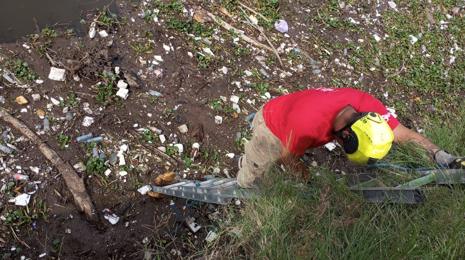 En el sitio se localizó a un can de raza criolla, tamaño mediano, que se encontraba entre matorrales y agua dentro del cauce.