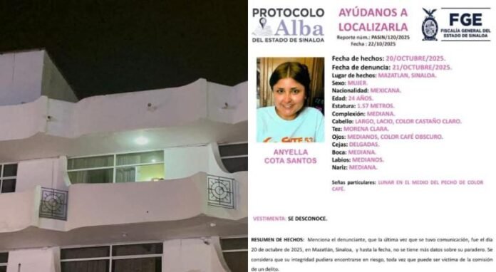 Anyella laboraba en un kínder del fraccionamiento Santa Teresa, en Mazatlán, y fue vista por última vez el lunes 20 de octubre. Su familia presentó la denuncia formal el martes 21, lo que activó el Protocolo Alba para su localización.