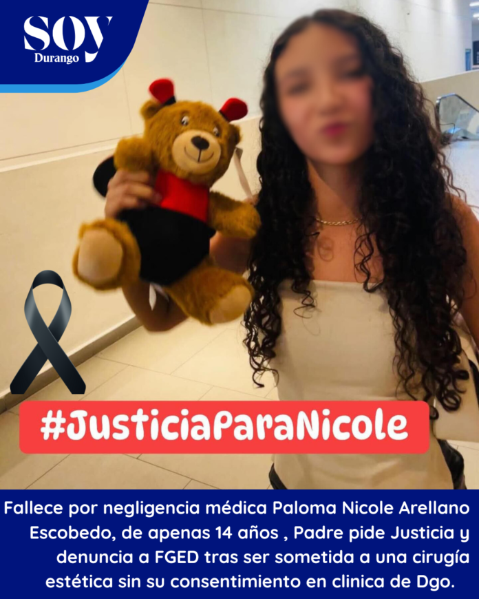 El 20 de septiembre del presente año, la adolescente Paloma Nicole Arellano Escobedo, de tan solo 14 años de edad, perdió la vida tras haber sido sometida, presuntamente sin el consentimiento de su padre, a un procedimiento quirúrgico estético en una clínica privada ubicada en la calle Fénix, en la ciudad de Durango.