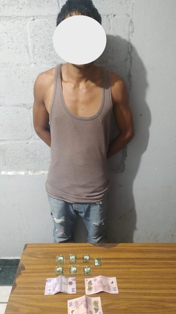 Se trata de Abril “N” de 28 años de edad, con domicilio en la colonia San Isidro de la ciudad de Gómez Palacio, Dgo., al inspeccionarla se le localizaron 6 bolsas de celofán con vivos color verde, conteniendo polvo blanco semigranulado con las características del cristal y 100 pesos en efectivo y; José “N” de 27 años de edad, con domicilio en la zona centro de la ciudad de Gómez Palacio, Dgo., se le encontraron 7 dosis de la misma droga y 150 pesos en efectivo.