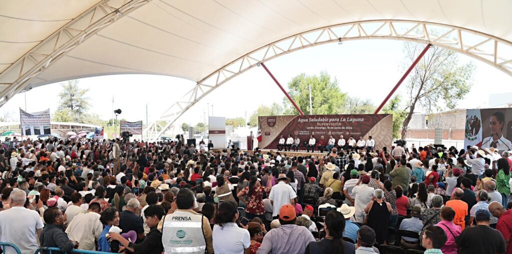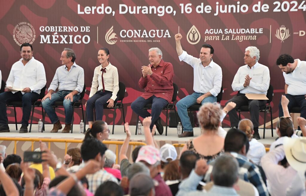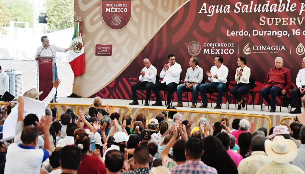 Este domingo, en presencia de los gobernadores de Durango y Coahuila y como parte de la visita del Presidente Andrés Manuel López Obrador y la Presidenta Electa Claudia Sheimbaum, al municipio de Lerdo, Dgo., se llevó a cabo una supervisión del importante avance del proyecto “Agua Saludable para la Laguna”, donde en su intervención, el gobernador de Durango Esteban Villegas Villarreal agradeció al presidente de la república por llevar a la realidad este proyecto -que para muchos- era un sueño.